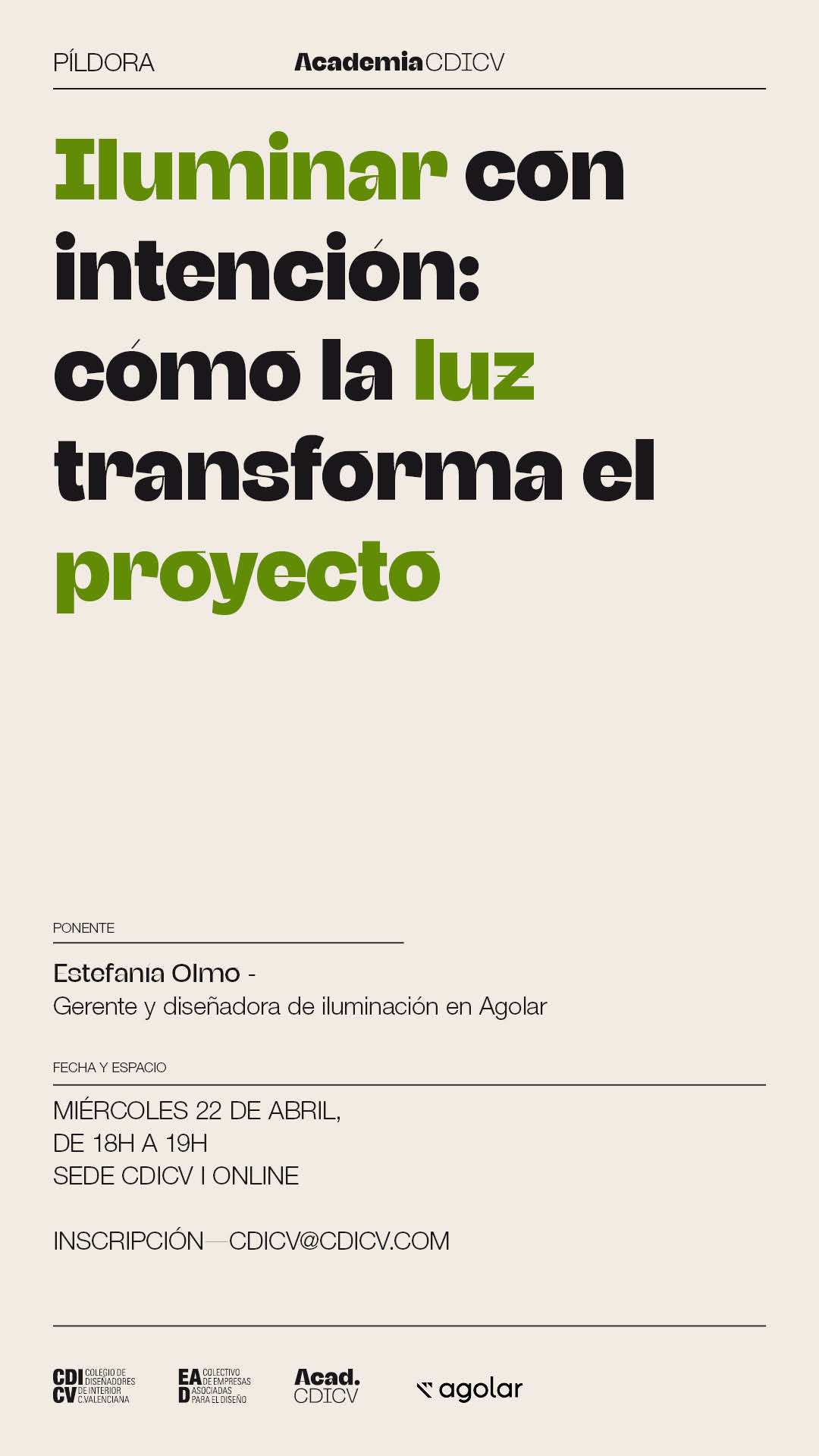 Las citas de Academia CDICV, impartidas por docentes acreditados, están disponibles en formato presencial y online, abiertas a estudiantes y profesionales del diseño, con precios asequibles y descuentos exclusivos para Colegiados y Asociados del CDICV.