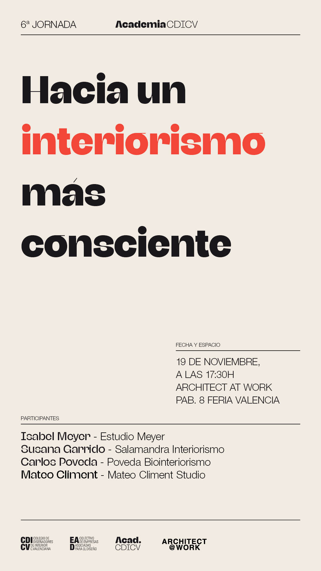 6ª ACADEMIA CDICV ‘HACIA UN INTERIORISMO MÁS CONSCIENTE’ EN ARCHITECT AT WORK VALÈNCIA