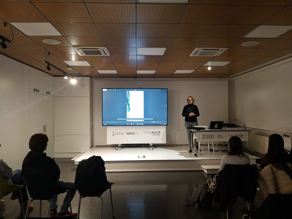 El pasado 4 de diciembre, la delegada de la provincia de Alicante de la Junta del CDICV, Mª Carmen Mateu (C. 0106) visitó la Escola d’Art i Superior de Disseny d’Alcoi para ofrecer a los alumnos de último curso de Grado de Diseño de Interiores y Ciclo de Proyectos y Dirección de Obra de Decoración unas interesantes charlas en torno al funcionamiento, actividad y servicios que nuestra entidad pone a disposición de Colegiados.