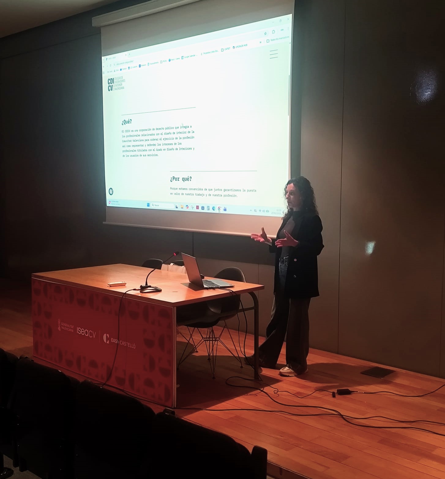 El pasado 27 de febrero la diseñadora de interiores y miembro de la Junta del CDICV Lucía Llidó (Llidó Estudio) ofreció una interesante charla a los alumnos de Diseño de Interiores de EASD Castelló en torno al funcionamiento, actividad y servicios que nuestra entidad pone a disposición de Colegiados/Asociados.
