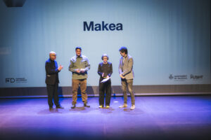 La Distinción Profesional 2026 fue otorgada a Makea, cooperativa de carácter social y educativo con más de quince años de trayectoria en innovación social y diseño sostenible. Recogieron el reconocimiento Mireia Juan y Alberto Flores, quienes destacaron la importancia del diseño colaborativo, el código abierto y la economía circular como herramientas para empoderar comunidades y activar dinámicas de aprendizaje colectivo. Su intervención permitió conocer de primera mano su enfoque metodológico basado en la cocreación y la reutilización creativa, pero también tuvieron un momento para la motivación y la llamada a la acción.