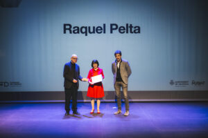 La segunda Distinción Profesional fue concedida a Raquel Pelta, investigadora, historiadora y profesora universitaria, reconocida por haber situado la dimensión social del diseño en el centro del pensamiento académico y profesional en España. En su conferencia de clausura, titulada «El diseño social no es caridad», Pelta defendió una visión crítica y estructural del diseño como práctica transformadora, alejándolo de planteamientos asistencialistas y reivindicándolo como herramienta de justicia social y construcción cultural. Terminando su ponencia quiso subrayar que “el diseño social es una alternativa a la desesperanza, a hacer visibles las contradicciones con una potencia que genere dinámicas para resolverlas”.