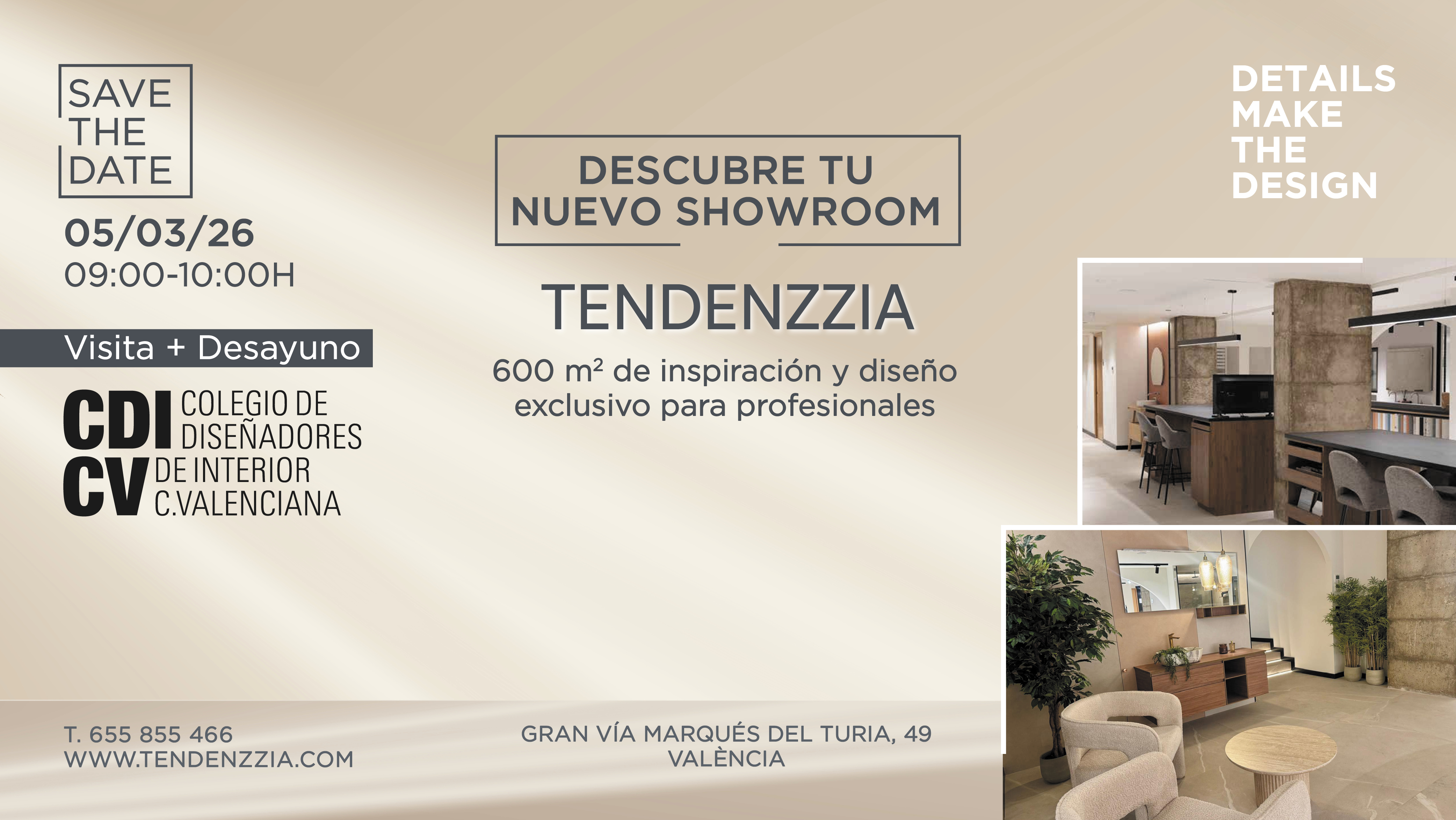 Un entorno accesible, funcional e inspirador donde descubrir una cuidada selección de cocinas, baños, pavimentos, revestimientos, ventanas y complementos. Materiales y soluciones que permiten explorar acabados, comparar opciones y tomar decisiones con criterio técnico y estético, con el acompañamiento experto y un servicio integral en todas las fases del proyecto.Tendenzzia invita a los miembros del CDICV a conocer este nuevo espacio en un evento desayuno exclusivo que tendrá lugar el 5 de marzo, de 9:00 a 10:00 h. en Gran Vía Marqués del Túria, 49.