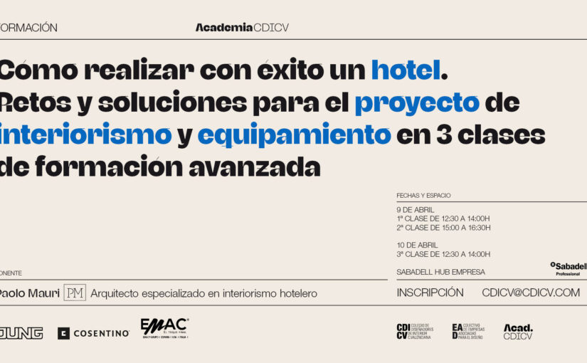 Academia CDICV · Cómo realizar con éxito un hotel. Retos y soluciones para el proyecto de interiorismo y equipamiento en 3 clases de formación avanzada