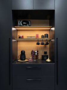 El proyecto se aleja de lo convencional para construir una atmósfera que transmite carácter, precisión y exclusividad desde el primer momento. El mobiliario, diseñado a medida, integra de forma sutil elementos del logotipo, convirtiéndose en un lenguaje propio que refuerza la personalidad de Asencio Homes.