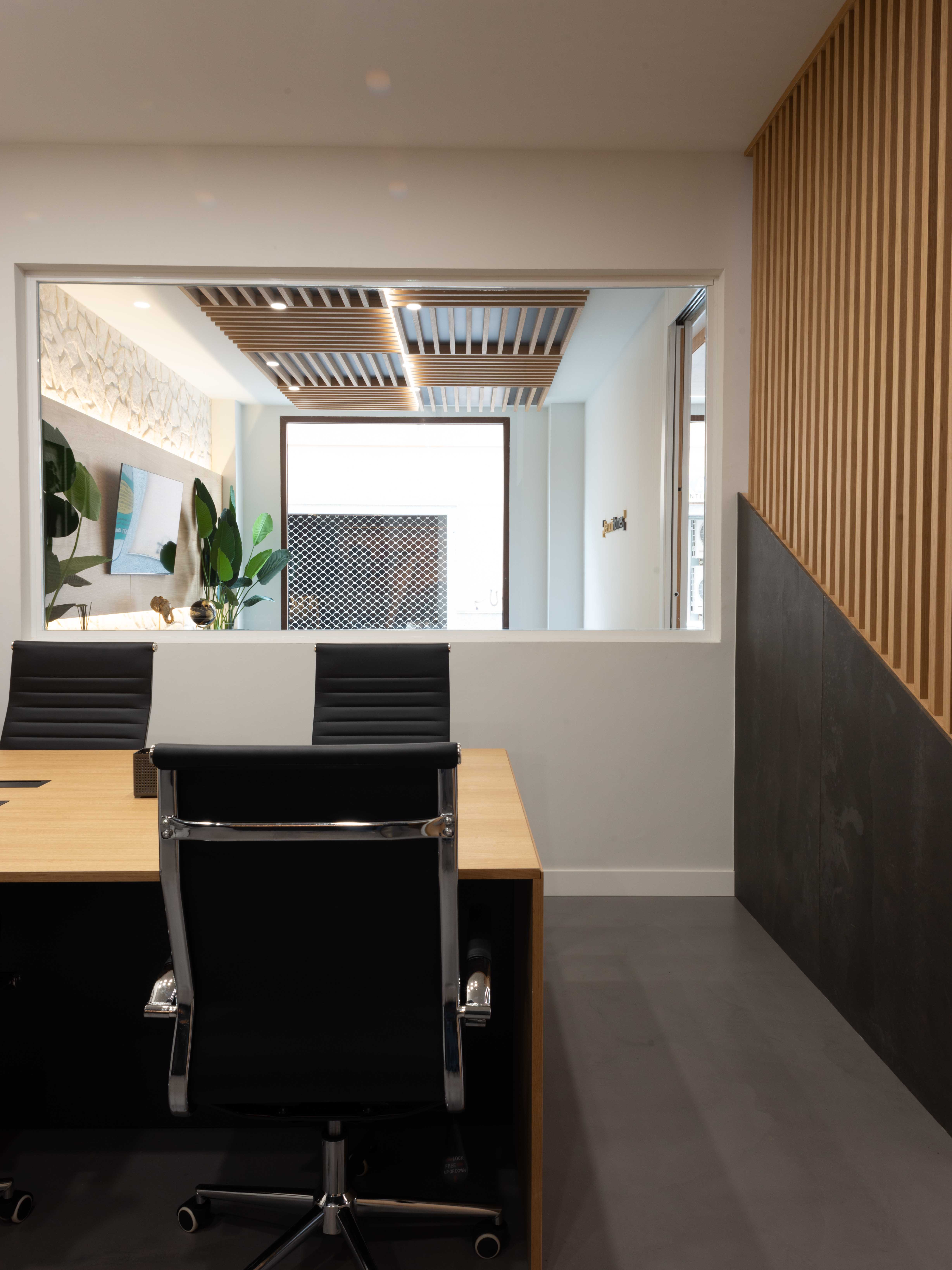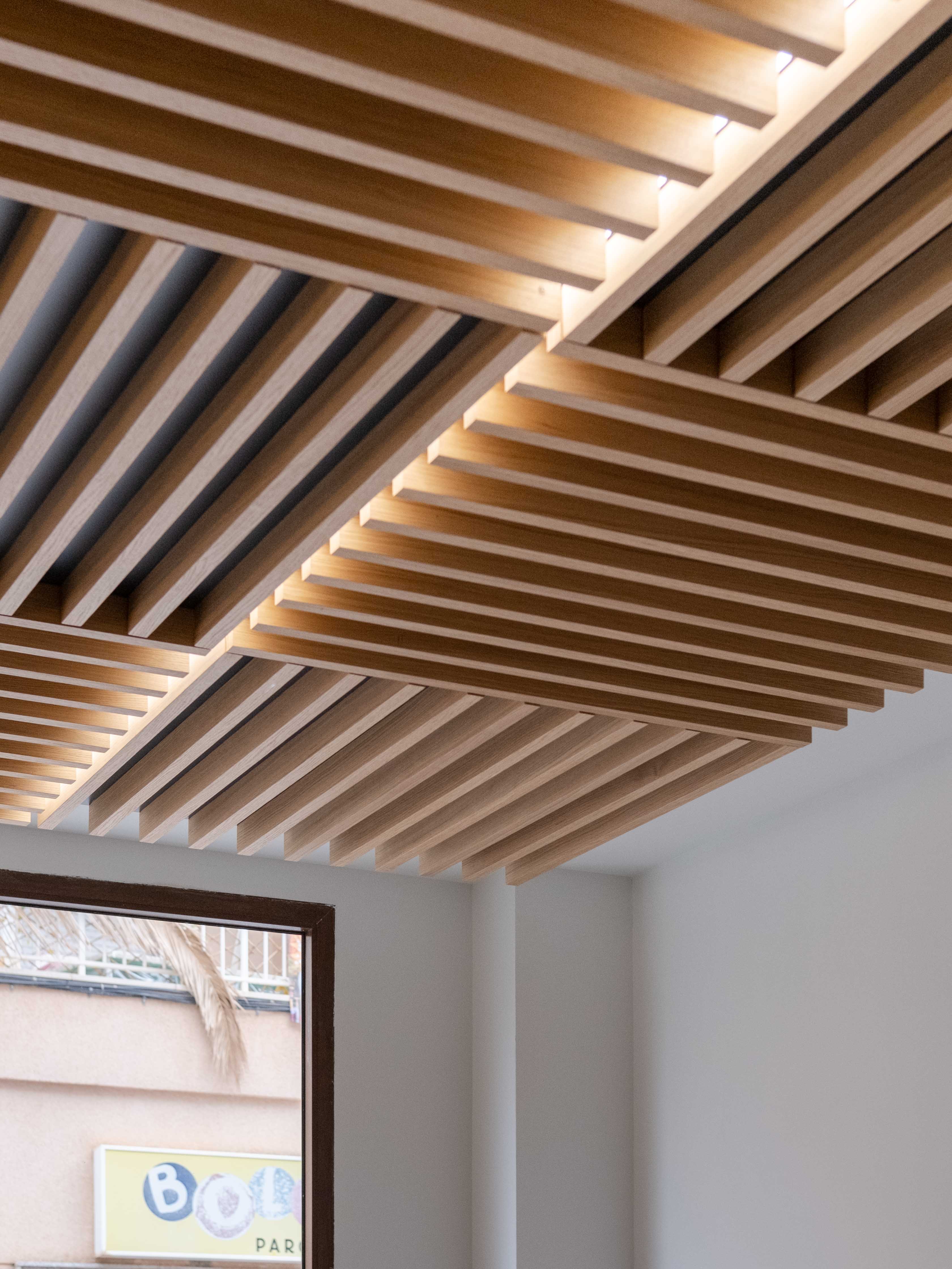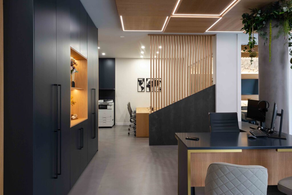 La iluminación indirecta y los techos revestidos en madera, diseñados para integrar y ocultar las instalaciones de climatización, completan el proyecto y generan una atmósfera envolvente y serena. El resultado es un espacio refinado y atemporal, donde diseño y funcionalidad conviven en coherencia con la esencia de la marca.