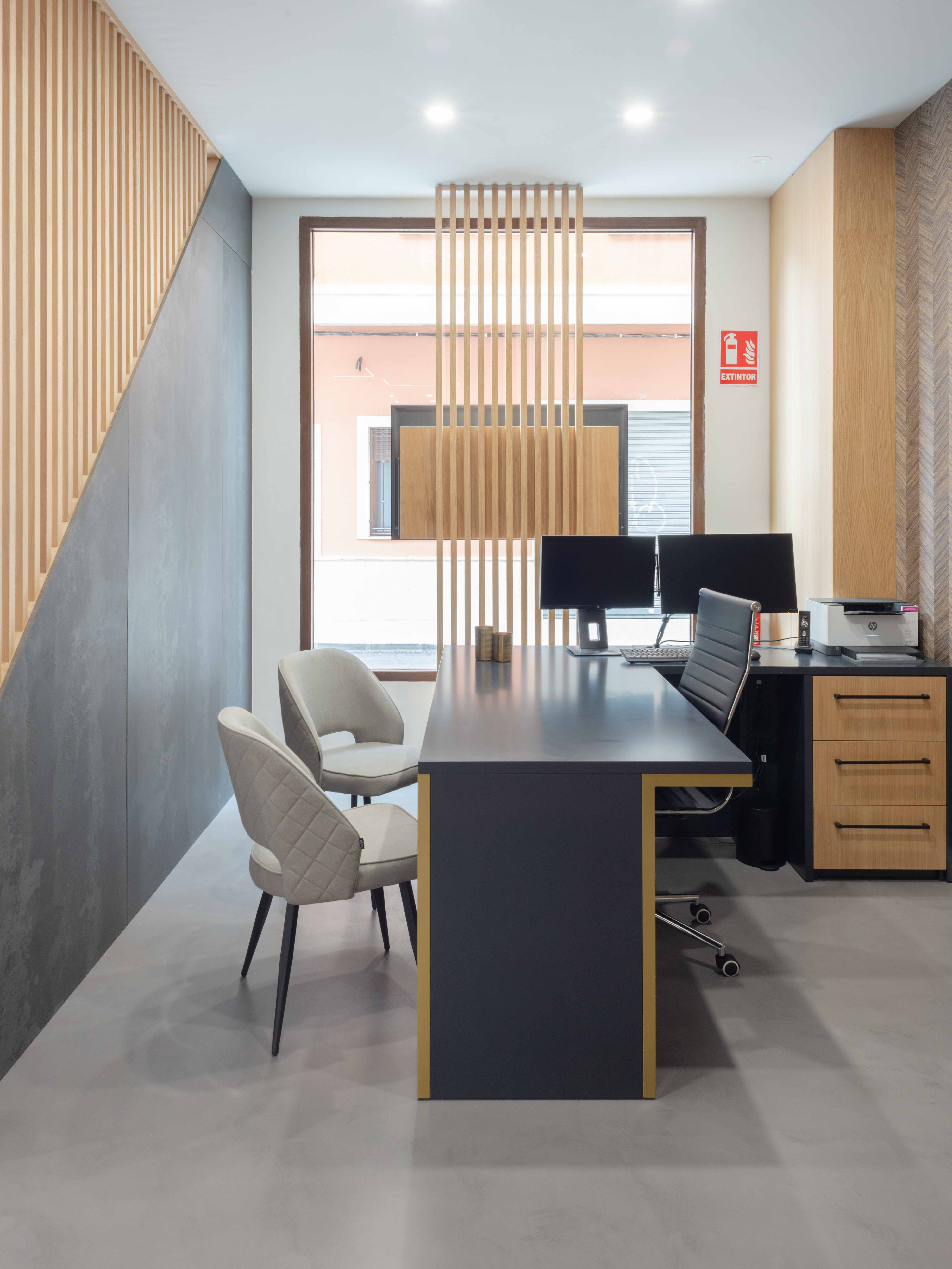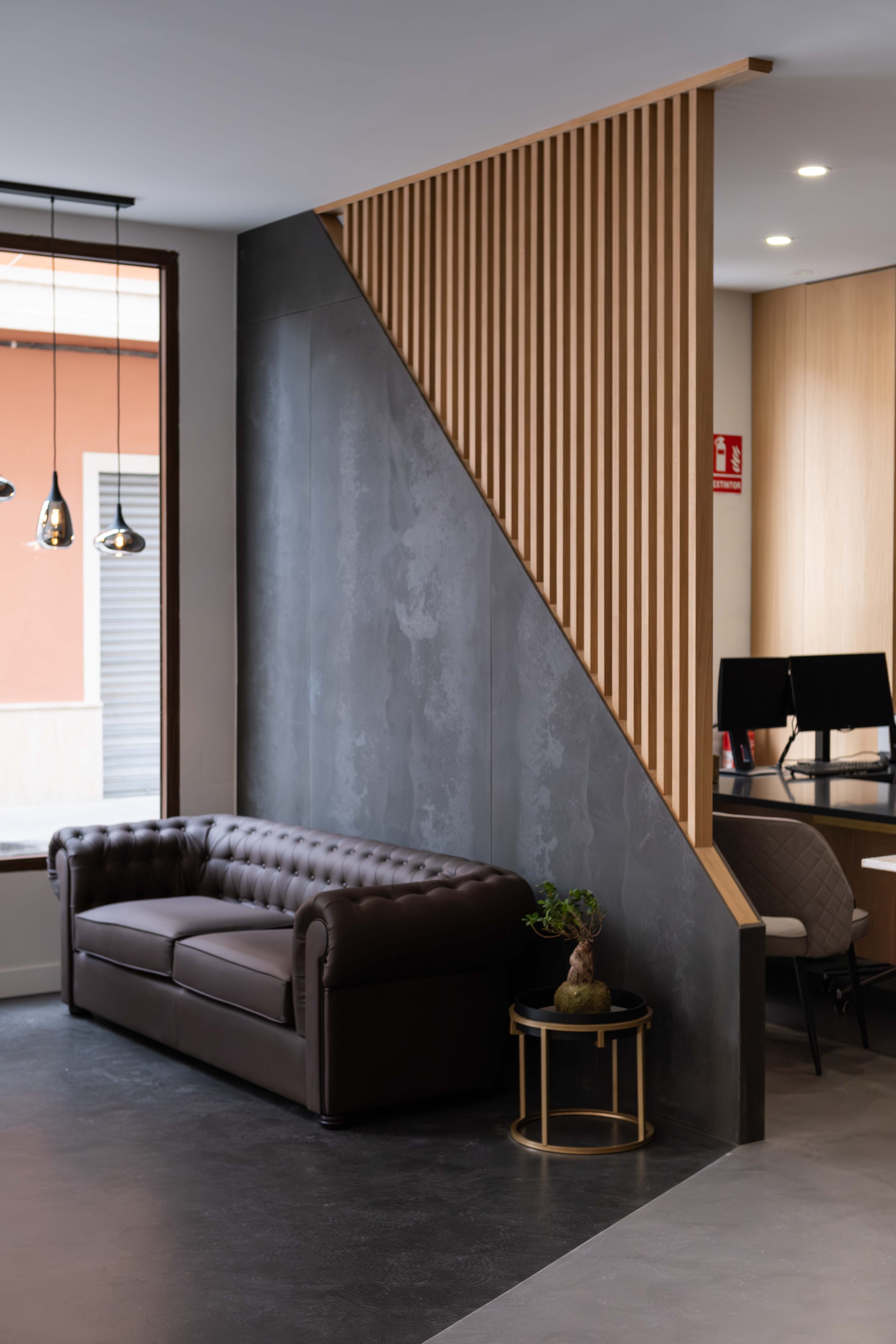 El proyecto se aleja de lo convencional para construir una atmósfera que transmite carácter, precisión y exclusividad desde el primer momento. El mobiliario, diseñado a medida, integra de forma sutil elementos del logotipo, convirtiéndose en un lenguaje propio que refuerza la personalidad de Asencio Homes.