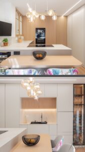 La intervención principal se centra en la cocina, un espacio semiabierto gracias a las puertas correderas que desaparecen dentro de la pared: abiertas, permiten disfrutar de un espacio diáfano y luminoso; cerradas, ofrecen intimidad y orden.