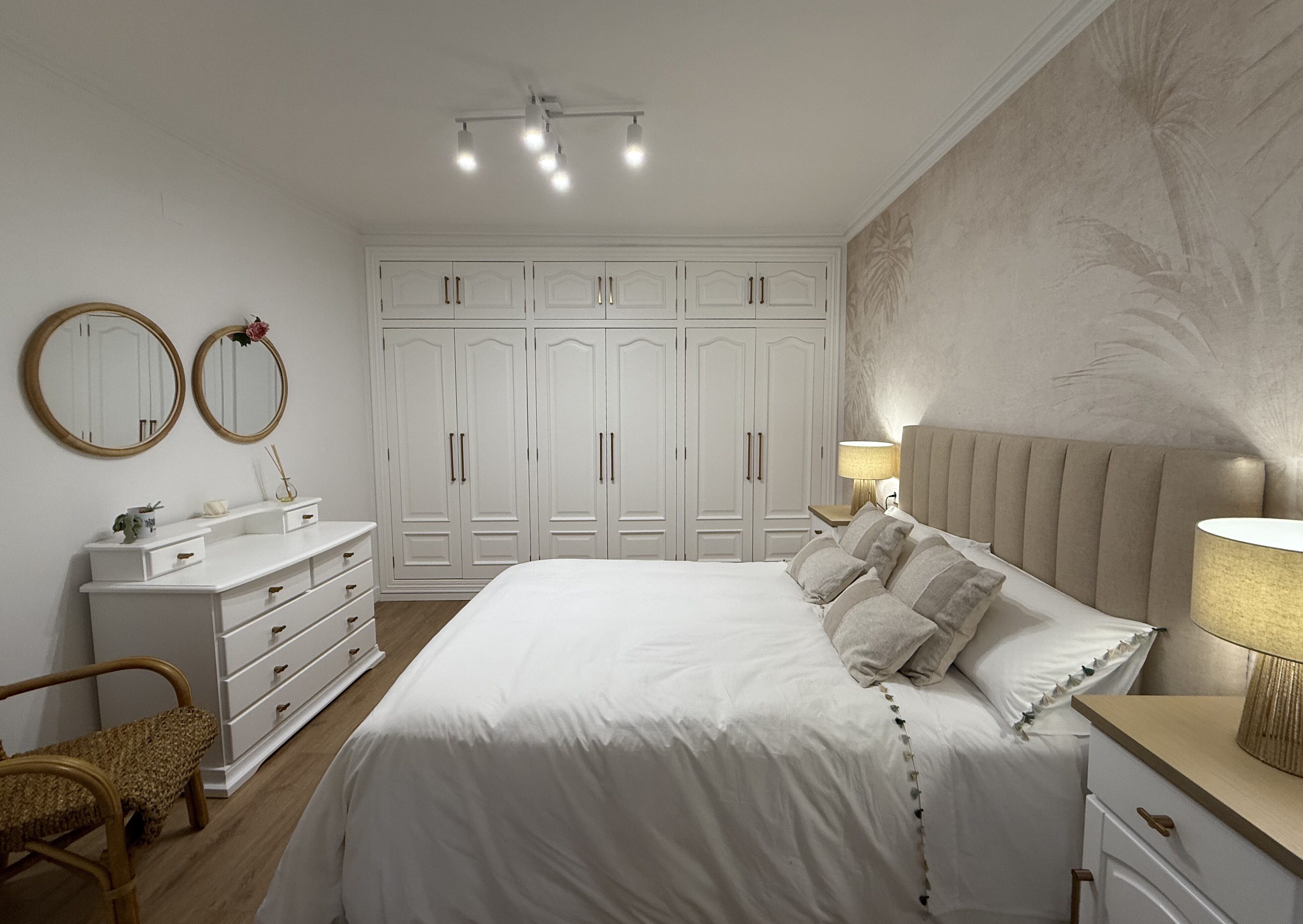En esta vivienda, el proyecto parte del respeto por la esencia original del espacio. Los muebles antiguos, de líneas robustas y presencia imponente, se han conservado como parte fundamental de la identidad del lugar. A través de una cuidada intervención, se han renovado mediante el color, otorgándoles un nuevo aire sin perder su carácter y su historia.