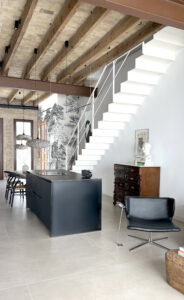 La zona de noche se traslada a la primera planta. Detalles que pasan inadvertidos en un primer instante, como la mesa de la isla sin patas o el suelo técnico del patio, hablan discretamente sobre la calidad del proyecto.