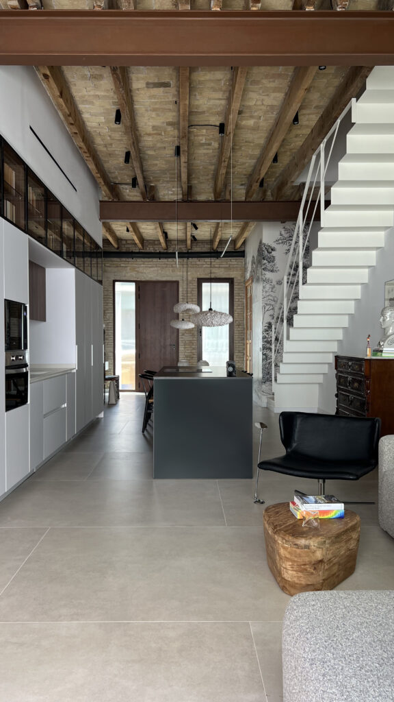La vivienda construida en 1935, presentaba un alto valor patrimonial, por lo que el forjado y la carpintería interior fueron recuperados e integrados en el proyecto. La zona de día, situada en planta baja, se abre al patio interior potenciando luz, amplitud y conexión interior-exterior.