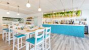 Aportando gamas cálidas y un concepto de materiales tradicionales para conseguir un ambiente que se funde con la naturaleza y el mar.