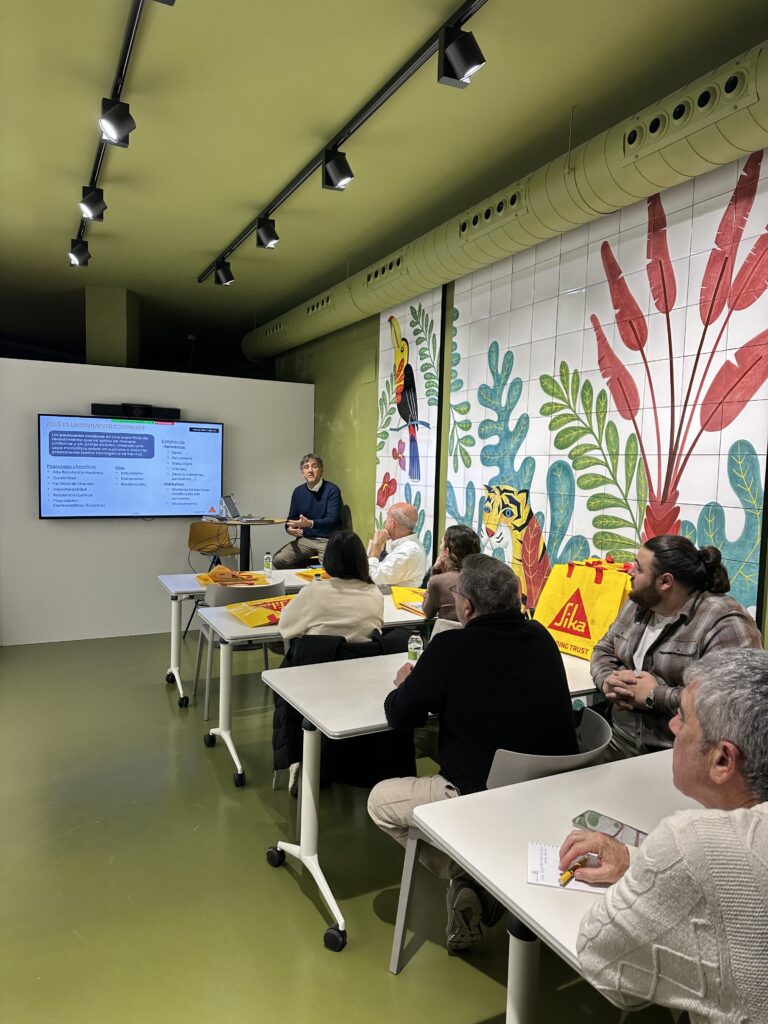 El pasado 2 de diciembre recibimos en nuestra sede a Rafael Torres, sales manager en Sika, que ofreció a colegiados tanto presencial como online una formación de aplicación de su solución en pavimentos continuos decorativos Sika Comfortfloor®.