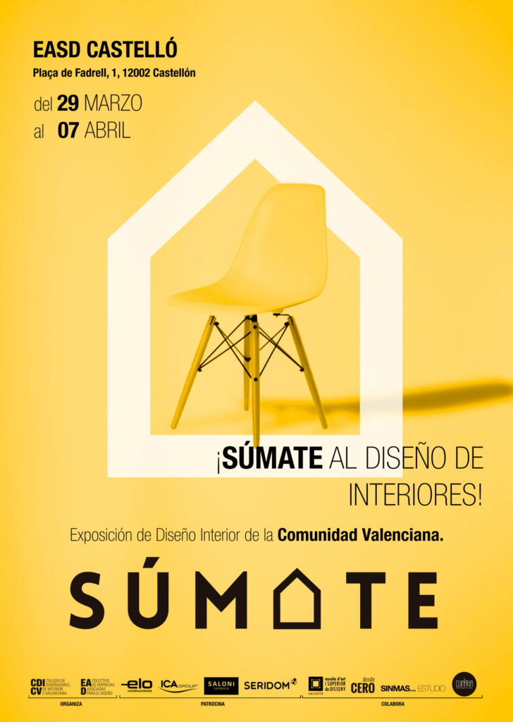 Súmate es la exposición que muestra el trabajo, profesionalidad y talento de los tres pilares fundamentales que sustentan el CDICV: Diseñadores de Interior colegiados, Empresas Asociadas para el Diseño y Estudiantes de las Escuelas de Arte y Diseño de la Comunidad Valenciana.