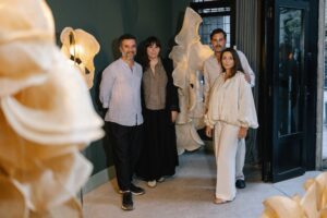 Los cofundadores de Viruta Lab, María Daroz y David Puerta (C. 0143), acogen en su showroom de Valencia la instalación “Panta Rei” de ELIURPI, un proyecto escultórico inspirado en el Mediterráneo.