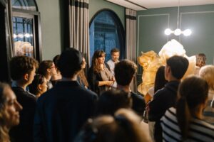La inauguración, celebrada el martes 30 de septiembre en el showroom de Viruta Lab en la calle del Mar, 47, reunió a numerosas figuras del tejido cultural valenciano. Entre los asistentes se encontraban Nadia y Nora Arratibel, directoras de Ondarreta; Teresa Almerich de Casa Decor; la creadora de contenido Mirén Alós; la directora de arte y fotógrafa Mara Cózar; el diseñador Adrián Salvador; José Morales, responsable de comunicación del Colegio Oficial de Diseñadores de Interior de la Comunitat Valenciana; Carla Alabau de la galería CLC Arte; el artista Misael del Rosario y Manuel Gancedo, de la firma